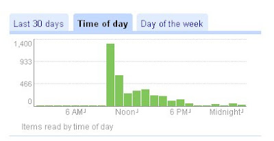 By analox Here is the statistics of my online reading habit (recorded by Google Reader)What conclusions can be drawn from these plots? Hehe… Btw, this entry is posted during my working hours as I’m not quite in the mood for working these days (hix :|)… :”>