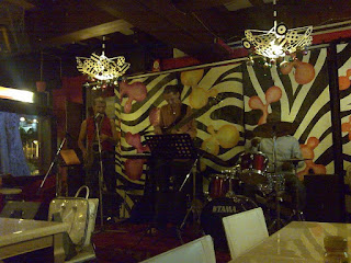 Back to Blu Jaz. It is a nice place, open environment with no air-cond (and it’s not hot at all), nice food and drinks; last but not least, acceptable prices :D. But the thing that impresses me most was the trio band (shown in the photo) playing there last night. They all played very well, but I like the bassist (the man in the middle) the most. The sound of his guitar and the saxophone were blended, and his style fills with passion to the notes he plays. “Sadly” that for all the songs they played, I only know “She’s leaving home” (Beatles) :”>