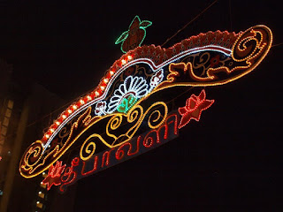 Hôm qua, lần đầu tui mò ra khu Little India, vì thấy bảo ngoài đó đèn đóm ghê lắm, Deepavali = “Festival of Light” mà (wiki: In Singapore, Diwali is marked by 2 kilometres of lights across the Little India area.). Hix… nhưng mà là đèn điện – nhìn như vầy nè.